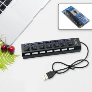 6994 USB Splitter Multi Port USB 2.0 Hub, 7 Port with Independent On/Off Switch and LED Indicators USB A Port Data Hub, Suitable for PC Computer Keyboard Laptop Mobile HDD, Flash Drive Camera Etc